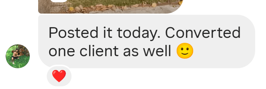 Once she followed Content To Clients she made 17 sales in 2 weeks.
