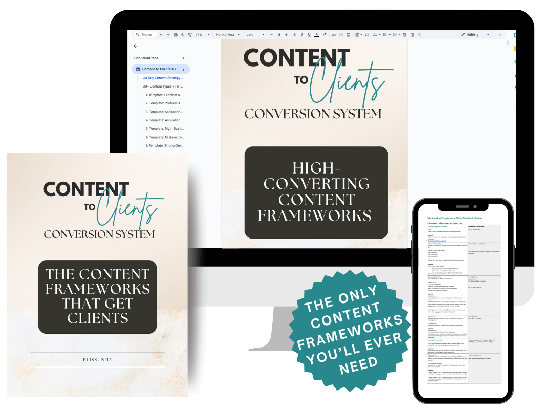 It's time to finally make content creation the easiest part of marketing your business and the Content To Clients Conversion System is the solution to transform your posts into a client-generating machine.
